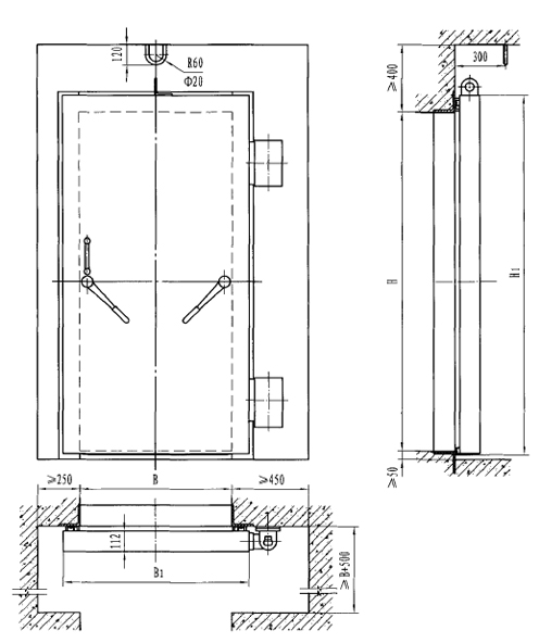 | 型號(hào) | 門孔寬B | 門孔高H | B1 | H1 |