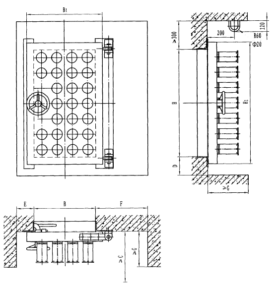 | 型號 | 風量(m3/h) | 門孔尺寸HXB(mm) | 門扇尺寸H1XB1 | 膠管數(shù)N | 門扇質量(kg) | 活門質量(kg) | 擴散室最小尺寸(高x寬x長)(m) | 土建尺寸D(mm) | 土建尺寸E(mm) | 土建尺寸F(mm) | 土建尺寸G(mm) | 門扇開啟最小尺寸C(mm) |