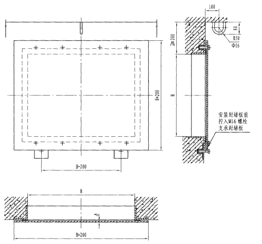 | 型號(hào) | 門孔寬B | 門孔高H | 封堵板厚δ |